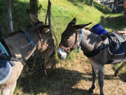 Unsere Esel auf der Sommerweide über dem Dorf, wir geniessen es