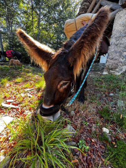 Unsere Esel auf der Sommerweide über dem Dorf, wir geniessen es