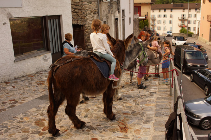 Esel Reiten am Markt in Intragna