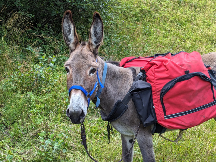 Unsere Esel auf der Sommerweide über dem Dorf, wir geniessen es