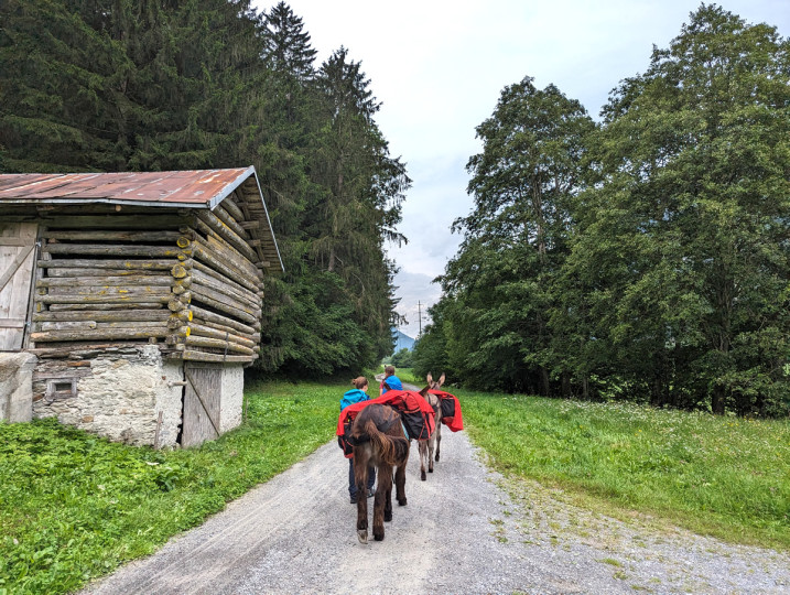 Unsere Esel auf der Sommerweide über dem Dorf, wir geniessen es