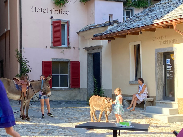 Esel Reiten am Markt in Intragna